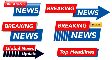 A collection of vibrant news banners featuring bold typography and dynamic shapes, perfect for media and broadcasting use