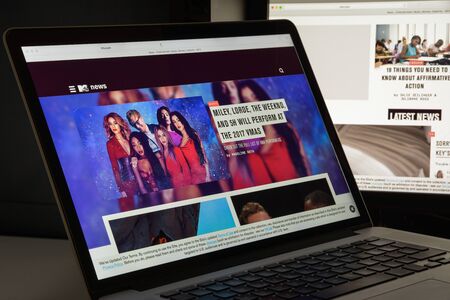 Milan, Italy - August 10, 2017: Mtv website homepage. Mtv logo visible.