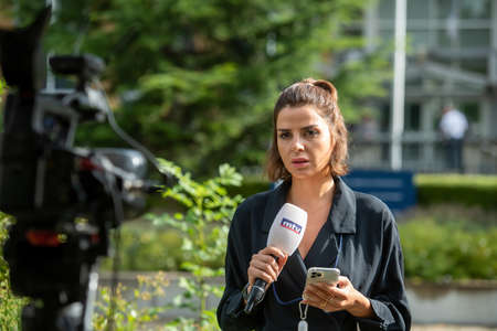 Journalist Report Interview. New Broadcasting Reporter. Journalism And Press