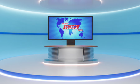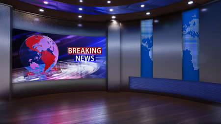 3D Virtual TV Studio News, Backdrop For TV Shows .TV On Wall.3D Virtual News Studio Background