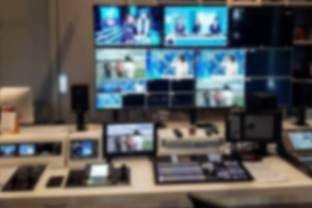 Blurred image video switch of Television Broadcast, working with video and audio mixer, control broadcast in recording studio.
