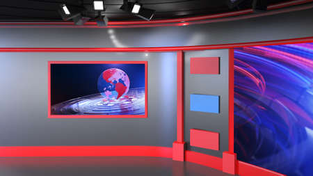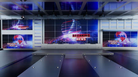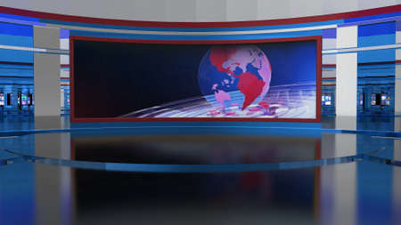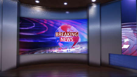 News Studio, Backdrop For TV Shows .TV On Wall.3D Virtual News Studio Background, 3d illustration