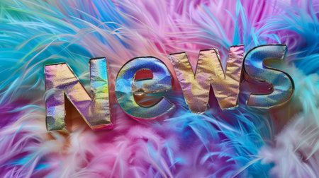 Chalk drawing of News word on a blurred chalkboard with colorful motion rays
