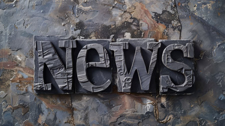 the word news written with lead letters. photo icon for newsletters, newspapers and information