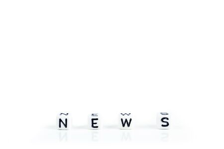 Word news.Wooden cubes on newspaper. Close up studio shot