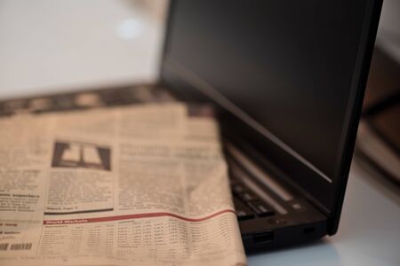 Noida , Utter pardesh , India - November 09 2021 , News paper , A picture of news paper on white background with selective focus in noida november 09 2021