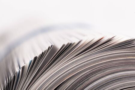 Stack of magazines studio isolated on white background with space for your text