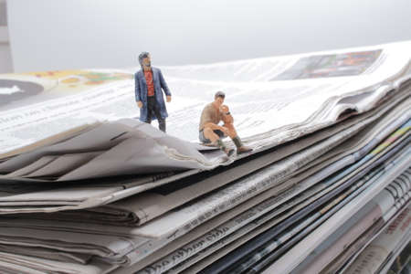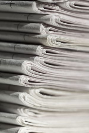 Stack of newspapers on the table. Selective focus and shallow depth of field.