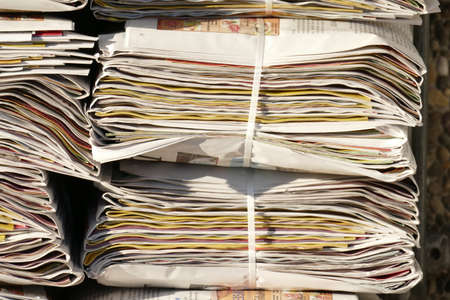 A stack of newspapers, news, corrupt journalism. They are ready for distribution to readers.