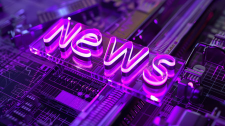 A modern news studio featuring vibrant neon lighting and a sleek design, ideal for capturing the essence of contemporary broadcast journalism and media production.