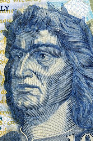 Close up view Portrait of Alexander Hamilton on the one ten dollar bill. Background of the money. 10 dollar bill with Alexander Hamilton eyes macro shot. Money background. Face portrait