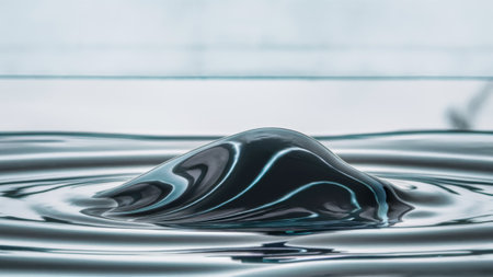 Abstract macro shot of water with concentric ripples, iridescent hues, and soft reflections