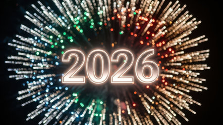 Glowing numbers 2026 on a vibrant background with sparkling lights celebrating new year concept