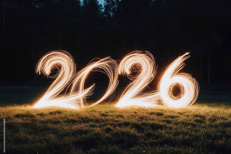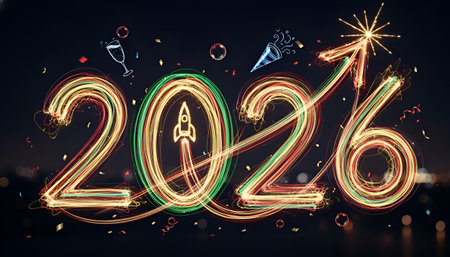 2026 numbers made from light trails, symbolizing innovation and fast growth