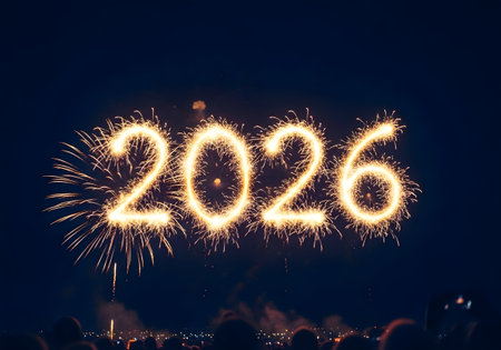 Golden sparkler fireworks display forming the year 2026