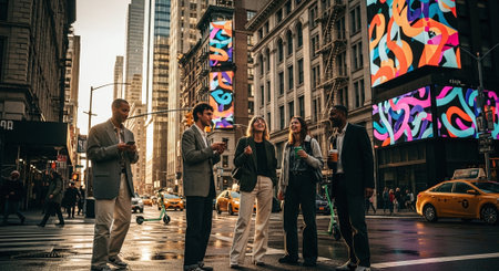a digital billboard in a bustling urban setting.The ad should feature vibrant colors and bold typography to grab the attention of the city crowd