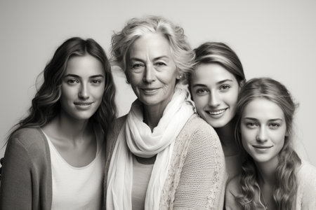 Three generations of women, a grandmother, mother, and daughter portrait, showcasing their bond and diverse beauty, family connection and love