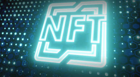 NFT non-fungible token. cryptocurrencies. digital cryptoart. Digital technology concept. 3d illustration.