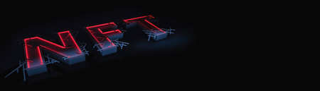 three-dimensional glowing red nft inscription on a dark background. crypto art concept. 3d render illustration