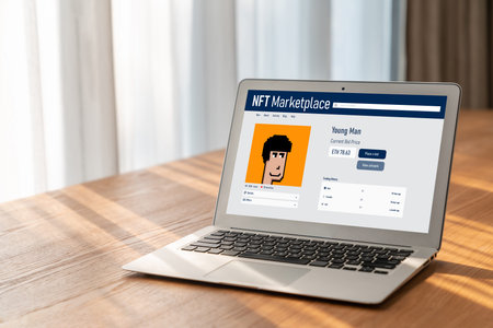 Future of crypto art with NFT marketplace, non fungible token business background