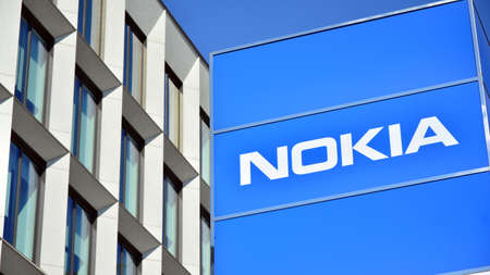 Warsaw, Poland. 27 April 2020. Sign Nokia. Company signboard Nokia