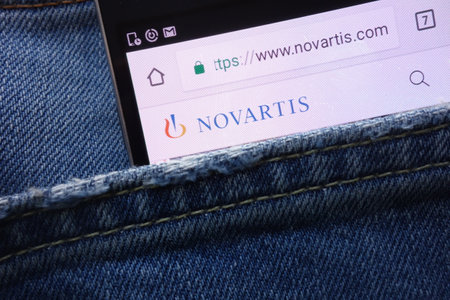 KONSKIE, POLAND - MAY 19, 2018: Novartis website displayed on smartphone hidden in jeans pocket