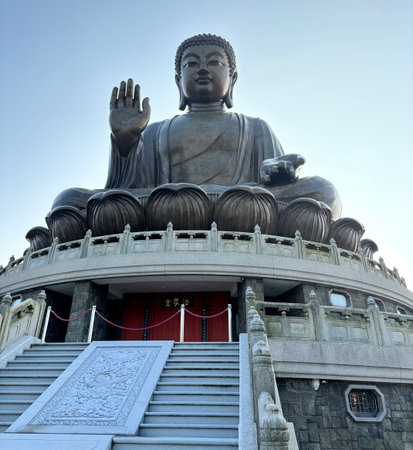 Tian Tan Buddha or Giant Buddha statue at Po Lin Monastery Ngong Ping, Lantau Island, Hong Kong, China.