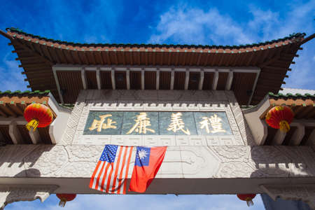 Boston,Massachusetts,USA - JULY 2, 2016: Showcasing its Asian-style portal.China Town in Boston is the only surviving historic ethnic Chinese area in New England since the demise of Chinatown in Providence, Rhode Island after the 1950's.