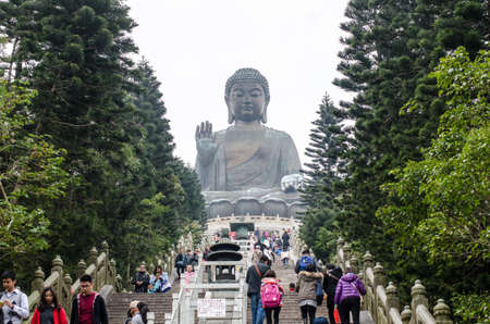 HONG KONG - JANUARY 6 : The Tian Tan Big Buddha located on the peak of the Muyu Mountain on 6 January 2013. It depicts Sakyamuni who sits on a lotus pedestal in meditation position at the Po Lin Monastery located in Ngong Ping on Lantau Island in Hong Kon