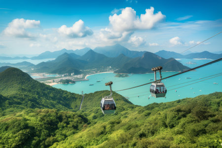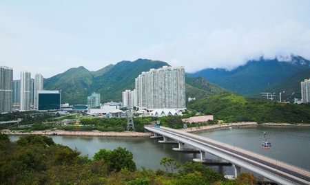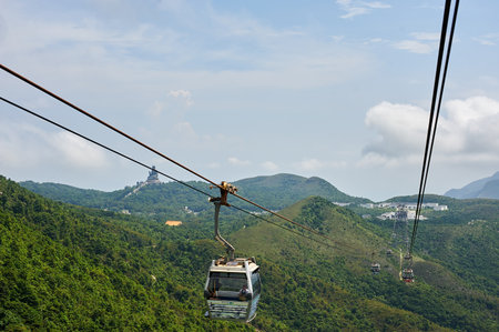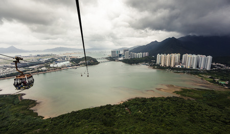 Lantau Island, Hong Kong - November 14, 2014: Beautiful view from Hong Kong cable cars, the popular public transportation from Tung Chung Station to Ngong Ping village, Lantau Island, Hong Kong.