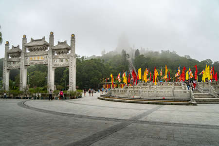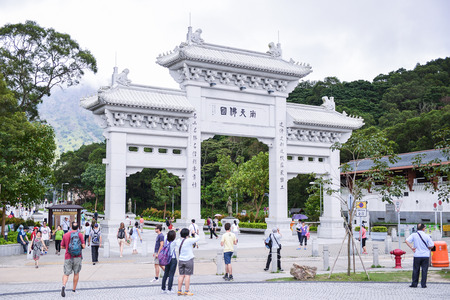 Hongkong - 14 Jan 2016 : Tourist at the Po Lin Monastery gate on Lantau island