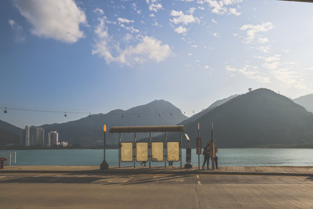 Feb 13 2024 bus stop on the coast road in Lantau Island
