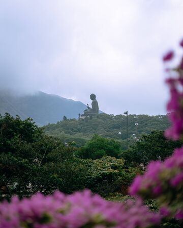 Big Buddha statue High mountain, buddhist temple in Hong Kong China