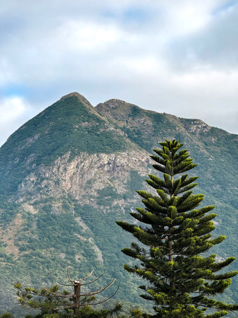 Breathtaking view of Ngong Ping highlands in Hong Kong. Seen is the mountain and hills,Picture is taken from the Giant Buddha or Tian Tian Buddha monastery.