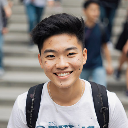 Man enjoying fogy Hong Kong view standing at the Lion rock top
