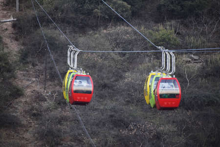 Cable cars traveling on Wugong Mountain in Jiangxi, China
