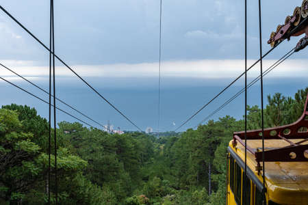 Miskhor, Crimea - 09/06/2019: Cableway Miskhor - Ai-Petri on a cloudy day.