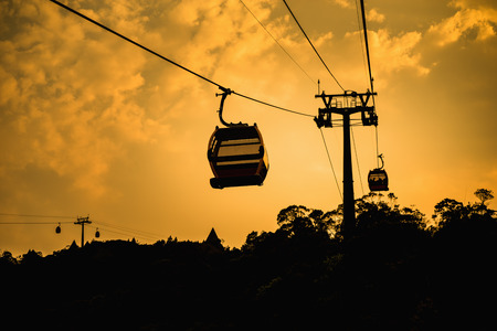Silhouette cable car at sunset