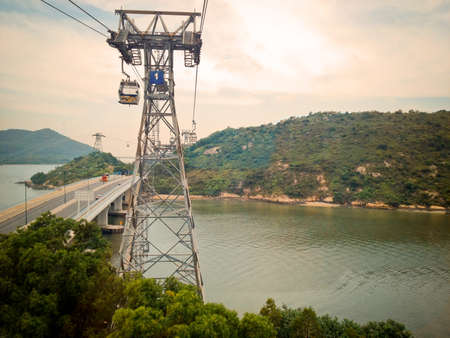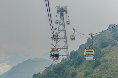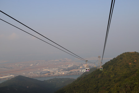 Lantau Island, Hong Kong - November 14, 2014: Beautiful view from Hong Kong cable cars, the popular public transportation from Tung Chung Station to Ngong Ping village, Lantau Island, Hong Kong.