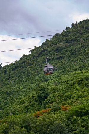 Cable car skyline to Ba Na Hills mountain, landmark in Danang, Vietnam