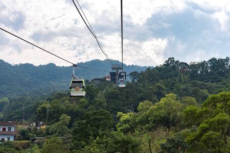 Maokong gondola with mountain around. A gondola lift transportation system in Taipei opened in 2016. operates between Taipei Zoo and Maokong.