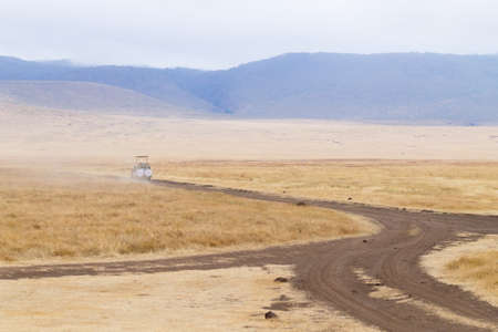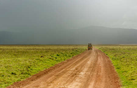 Safari transport on the road of Serengeti area, Tanzania, Africa