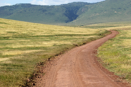 Dirt road on Ngorongoro crater, Tanzania landscape. Ngorongoro Conservation Area, Africa