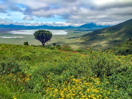 Tanzanian flowering valley Ngorongoro Crater Conservation Area, Tanzania. East Africa