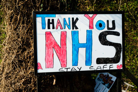 Yateley, United Kingdom, 9th April 2020:- A sign thanking the NHS during the Covid-19 outbreak