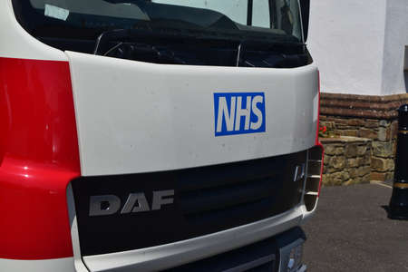 LONDON, UK - July 2021: NHS National health service logo with anatomical model