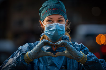 Surgeon in Mask and Gloves Makes Heart Gesture, Symbolizing Care and Dedication
