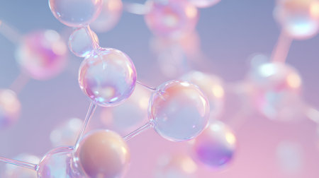 Soft glowing molecular design in pastel tones, symbolizing skincare, wellness, and dermatology-inspired cosmetic research