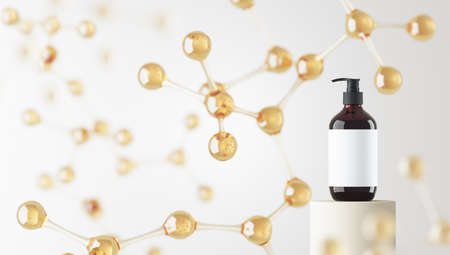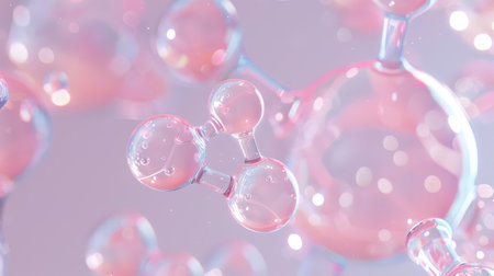 Cosmetics background, pastel Molecules, science background, lab background, herbal leaves, beauty products, bubbles background,Abstract Chemistry generative ai illustration