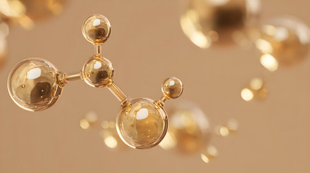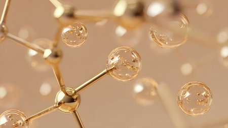 Molecular structure, science, and medical background. Abstract golden molecules. Molecular model luxury concept